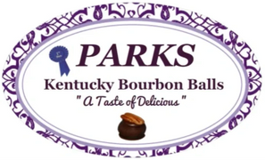 Logo for Parks Kentucky Bourbon Balls with a purple decorative border.